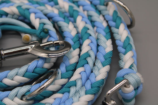 Hundeleinen sind für uns Hundehalter ein unverzichtbares Hilfsmittel geworden. Aber auch ein Ausdruck individueller Vorlieben. Ich möchte euch helfen, die für euch und euren Hund passende Hundeleine zu finden. Egal ob die klassische, verstellbare zwei Meter Leine, die kürzere Leine mit Handschlaufe oder was längeres, um dem Hund mehr Freiraum zu bieten: Hier könnt ihr es finden. Und sehr gerne erfülle ich euch individuelle Wünsche, die so kein anderer hat.