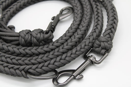 Leinen aus Paracord sind nicht als Schleppleinen geeignet und werden auch nicht als solche verkauft. Paracord reibt sich schnell auf, wenn es über (harten) Boden schleift und kann dann dementsprechend schneller reißen. Die Leinen sind auch nicht als Spielzeug geeignet, weder zum Zergeln noch zum werfen.